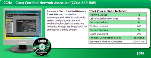 TestOut出品的思科CCNA 640-802教程,預計學習時間為40-50小時。