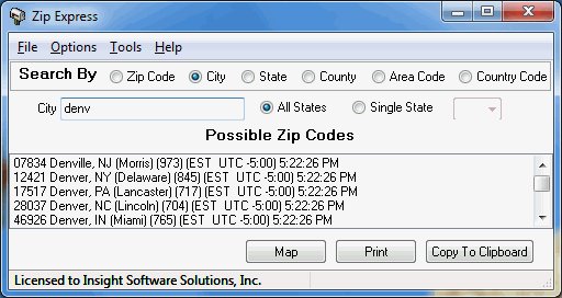 郵遞區號Express允許查詢美國郵遞區號和其關聯的城市,州,縣,區碼,時區和