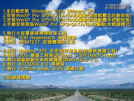 整合光碟 VistaXP v1.1 Vista(SP1)+XP(SP3)含軟體選單全程自動安裝+XPE免安裝作業系統=VistaXP