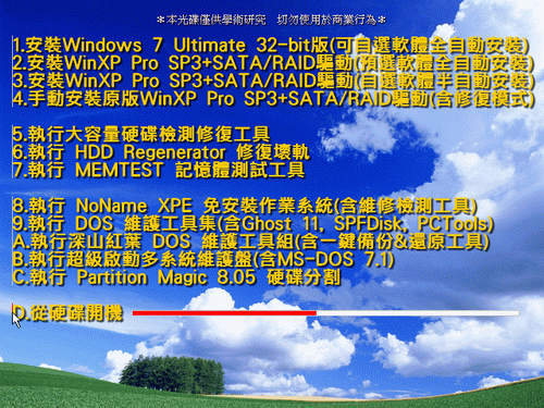(2)半自動安裝:整合SATA驅動XP+優化+XP更新至2009/9+Microsoft必裝軟體+IE7+WMP11+軟